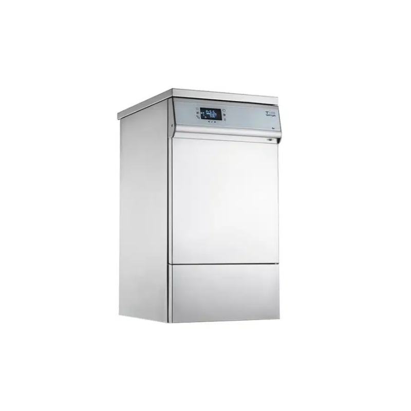 Camera de spalare si usa masinii Tethys T45 sunt realizate din otel inoxidabil AISI316L, iar eficienta de inalta calitate este asigurata prin intermediul filtrelor anti-impuritati. Datorita functiei de „pornire usoara” si a senzorilor de nivel si temporizare, socul termic este evitat.