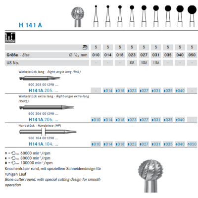 Freza chirurgicala pentru taiat tesut osos si substanta dentinara dura.