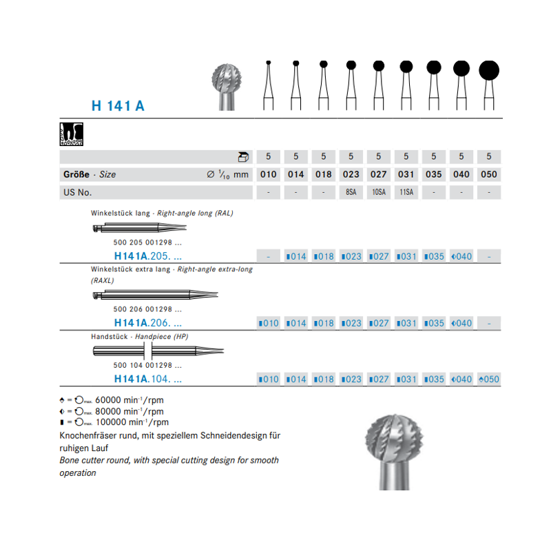 Freza lunga pentru piesa contra-unghi: H254E.205.012