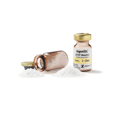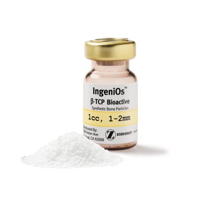 BENEFICIU CHEIE: Particulele sintetice bioactive resorbabile IngeniOs ß-TCP sunt înlocuitori de os cu resorbție la 3 luni. Aceste particule 100% non-biologice sunt realizate din fosfat beta tricalcic (ß-TCP) care este silicat, asigurând potențialul pentru creșterea bioacvității.