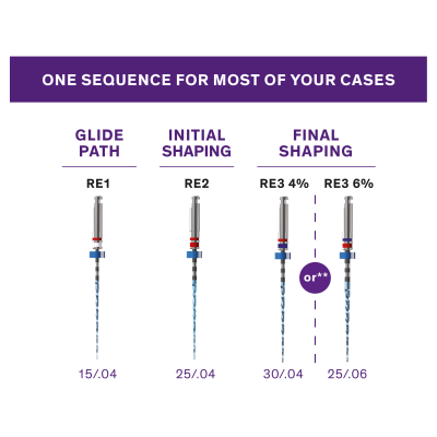 RACE® EVO Sequence 4% este o selectie de 3 ace pentru a prepara cu succes o anatomie variata a canalelor radiculare.