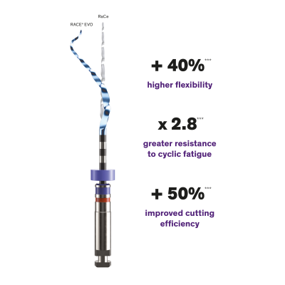 Caracteristicile originale RaCe extrem de fiabile, combinate cu un tratament termic brevetat si o capacitate de viteza de rotatie mai mare, fac ca instrumentele RACE® EVO sa fie si mai sigure, mai usor de controlat si mai eficiente ca niciodata.