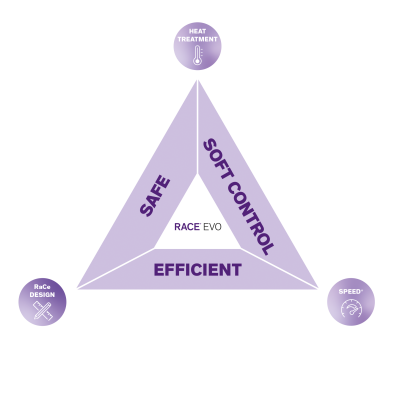 Designul RaCe si cei peste 20 de ani de performanta de incredere asociata cu o viteza mai mare, aduc o eficienta imbunatatita cu o senzatie familiara instrumentelor RACE® EVO.