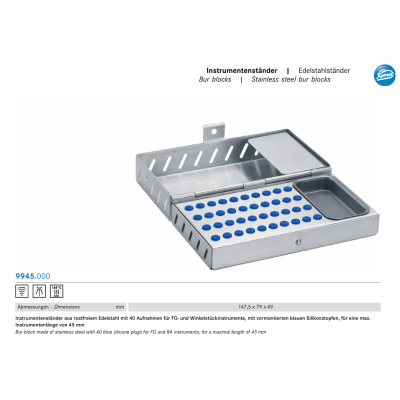Compartimentare: 40 x FG (freze de turbina) & RA (freze contraunghi)