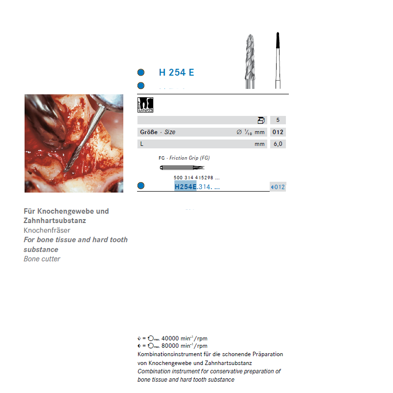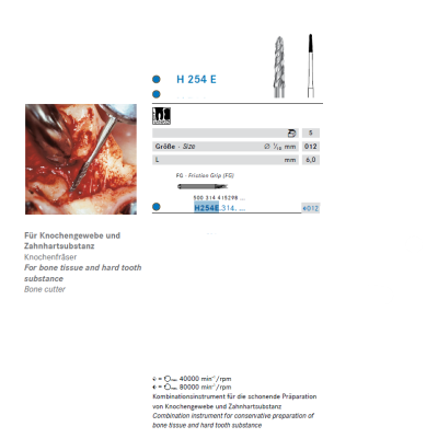 Freza chirurgicala pentru taiat tesut osos si substanta dentinara dura.