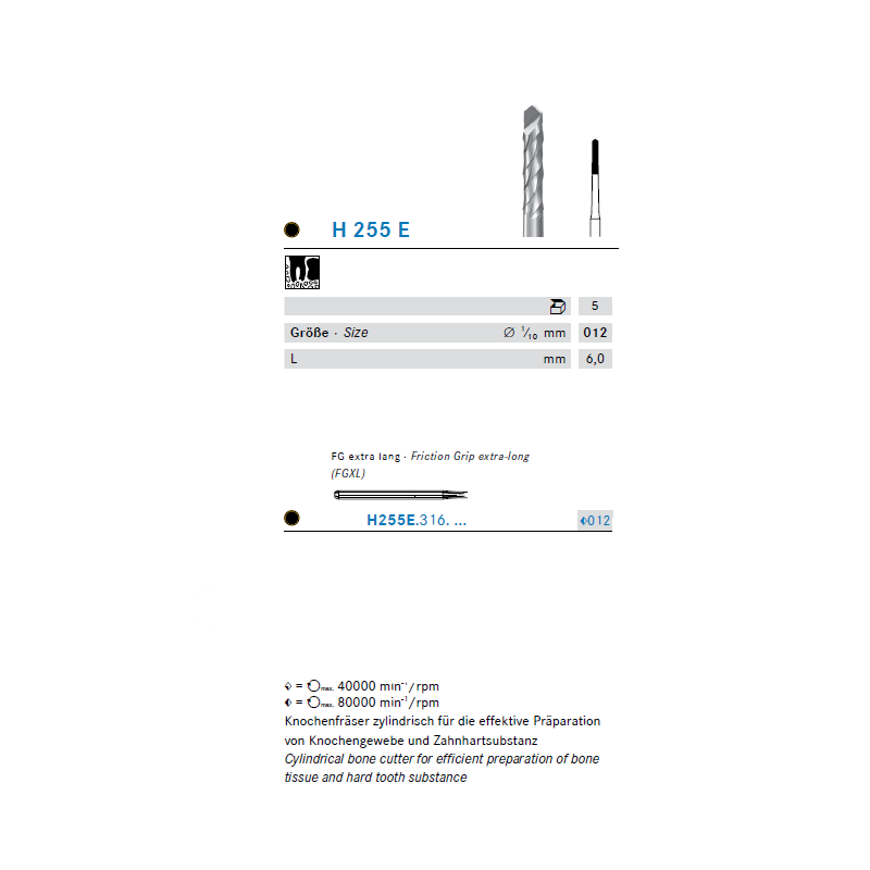 Freza chirurgicala cilindrica pt prepararea eficienta a tesutului osos si a substantei dentinare dure/TURBINA